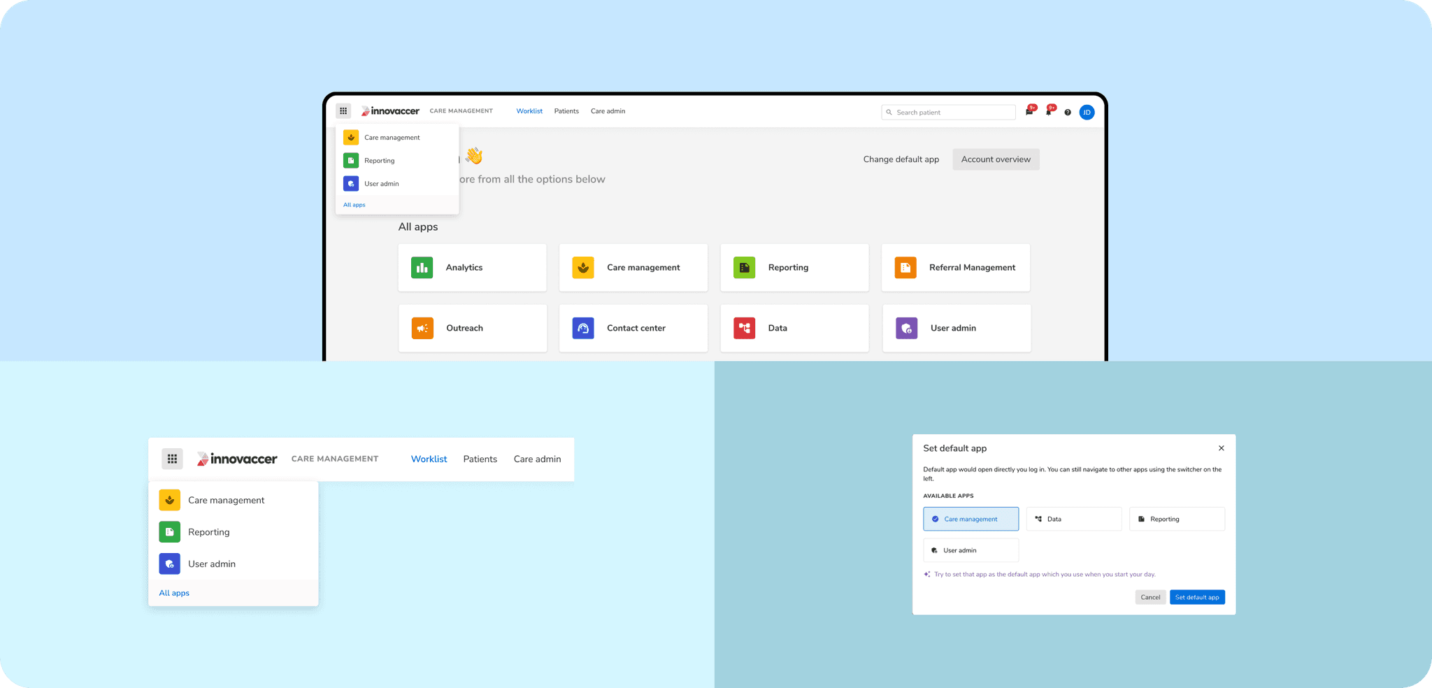 A redesigned Innovaccer's top navigation and FTU experience, enhancing usability, scalability, and patient search for millions of users across applications.